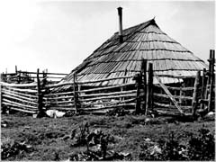 LinaVhod v lopo bajte, ki je bil nekdaj odprt, po začetku bajtarstva (1930) pa so pastirji začeli nameščati prag in zunanja vrata bajte. |